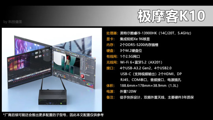 总的来说,极摩客K10是一款专注于商务、办公和工业场景定制的迷你主机,i9-13900HK的性能放在今天也依旧能打,3个硬盘位可以彻底治愈用户的存储焦虑,利于维护的徒手快拆,包含COM在内的丰富接口和独立的天线设计也令人印象深刻。除了2699元的准系统,这款产品还提供了32GB+1TB的整机版,到手价3699元,适合预算相对宽裕的专业用户。对于追求极致性价比的普通玩家,个人还是更推荐搭载锐龙7 7840HS的极摩客K6,或是升级锐龙7 8845HS还有Oculink接口的K8 PLUS,两款机器准系统的价格分别为1699元和2199元,都是同配迷你主机中的佼佼者。