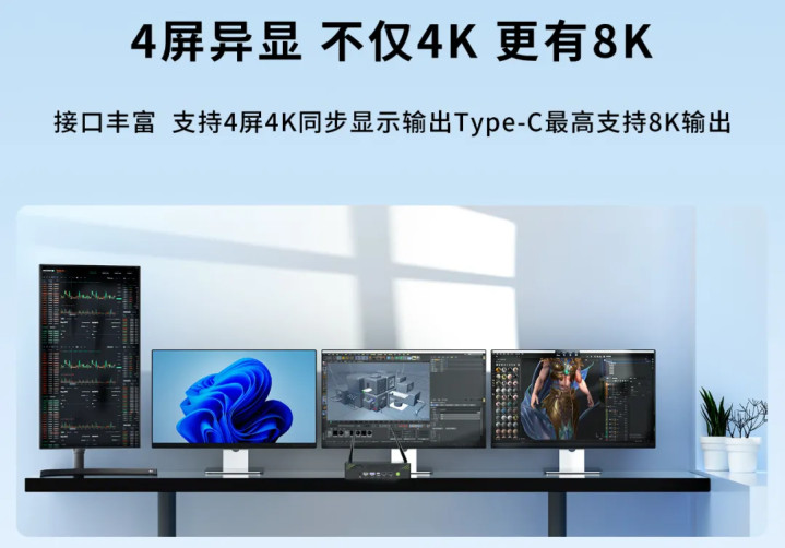 4个视频输出接口,可以搭建4屏异显的显示环境,充分满足内容创作和期股交易等工作场景。